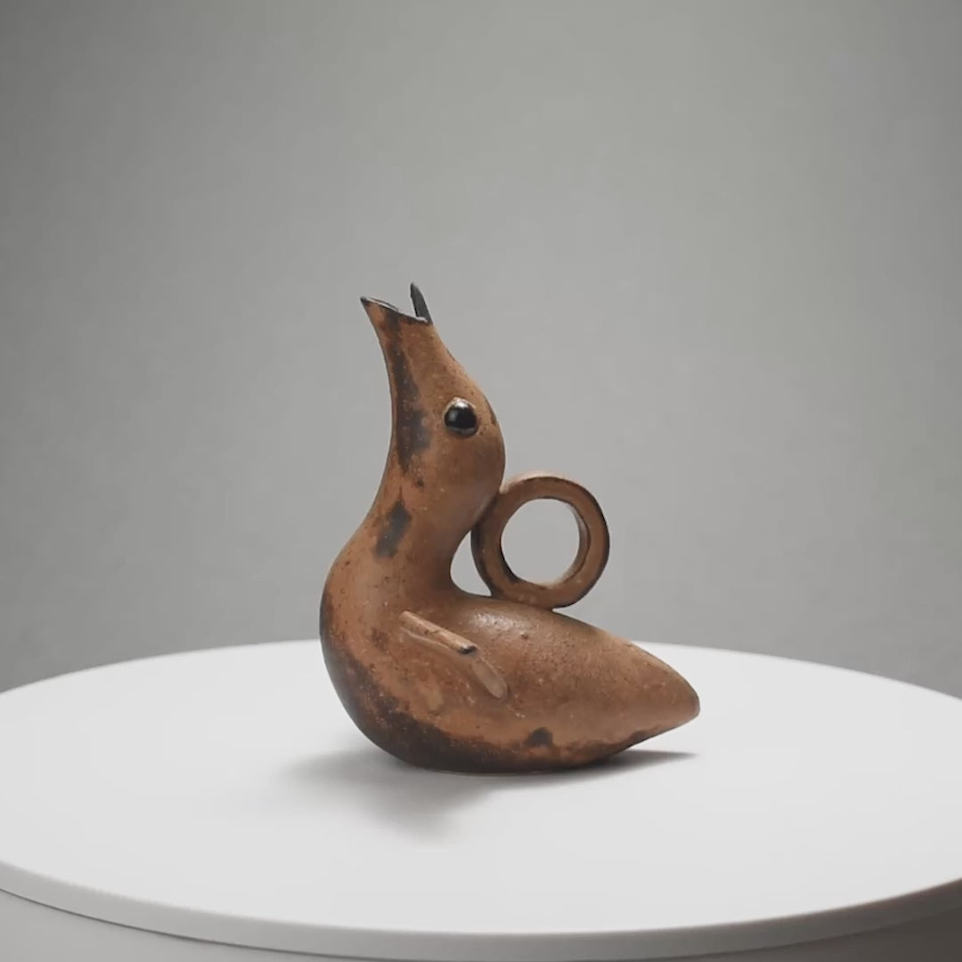 Glaçure Tadanoumi,récipient à saké en forme d’oiseau , cuite dans un four à bois, pour servir le saké.
